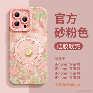 AU422花与月【砂粉色】硅胶软壳★磁吸支架