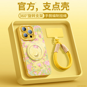 AU422花与月【活力黄】硅胶软壳★手提挂绳★磁吸支架