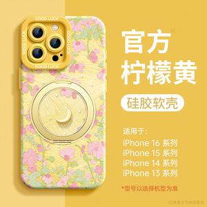 AU422花与月【活力黄】硅胶软壳★磁吸支架