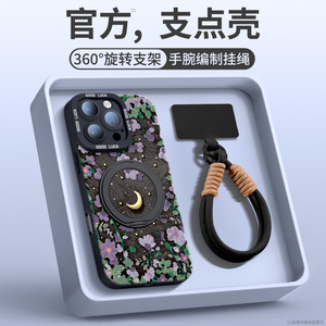 AU422花与月【黑色】硅胶软壳★手提挂绳★磁吸支架