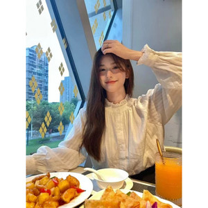 2025小红书爆款法式立领木耳边白色衬衫女秋季新款花边内搭打底