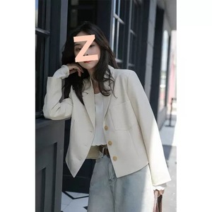 西装外套女2025春秋新款百搭港风气质小西装时尚白色短款长袖外套