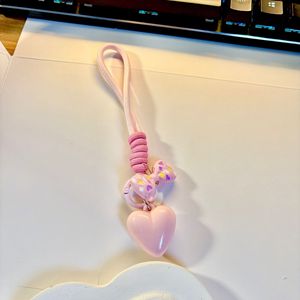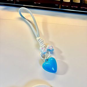 少女粉爱心手机挂链简约风编织绳蓝色挂绳通用挂件手腕带钥匙挂链