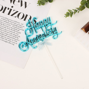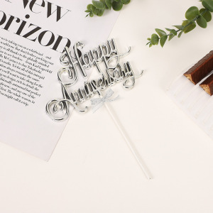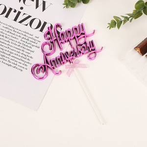 跨境立体生日快乐蛋糕插牌塑料烫金生日快乐蛋糕装饰插件派对用品