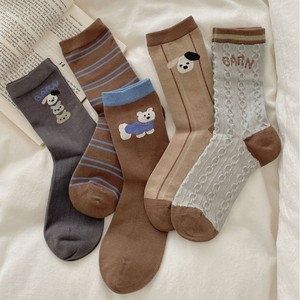 浓郁秋冬氛围感韩系ins风中筒袜卡通小狗堆堆袜无骨秋冬女棉袜
