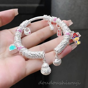 多巴胺盘缠手环女搭配如意葫芦元宝手饰复古百搭吊坠开口设计手环