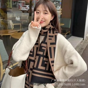 老花FD围巾女羊毛双面FF字母网红同款羊绒披肩百搭时尚流苏围脖