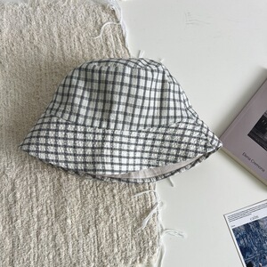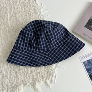 韩系蓝色格子双面渔夫帽女秋冬洋气时尚盆帽显脸小素颜帽子