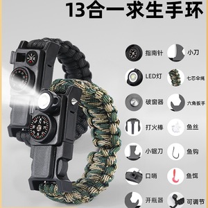 户外生存手环求生手链多功能防身装备伞绳13合1编织野外生存工具