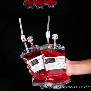 跨境350ml血袋双管饮料袋能量包吸血鬼日记万圣节血袋通用款