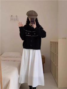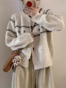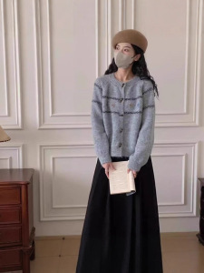 韩系复古软糯圆领牛角扣针织开衫秋冬新款温柔宽松慵懒风毛衣外套