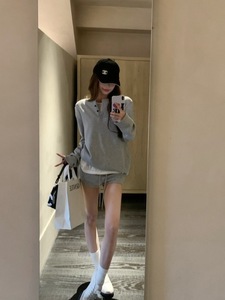 2025POLO领宽松薄款长袖T恤女早秋简约百搭高腰直筒休闲短裤套装