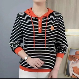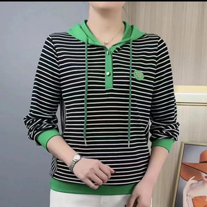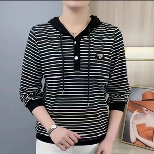 2025春季新款时尚休闲百搭显瘦条纹连帽长袖上衣春秋薄款卫衣春装