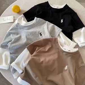 儿童长袖t恤25秋男童日系纯棉假两件T宝宝小童洋气打底衫大童上衣