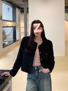 法式黑色春秋小香风外套百搭2025气质高级宽松新款短款上衣亚马逊