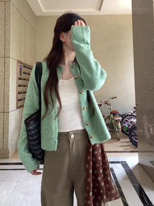 2025新款早秋季绿色软糯针织衫上衣女韩系宽松慵懒风毛衣开衫外套
