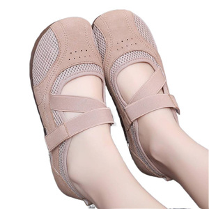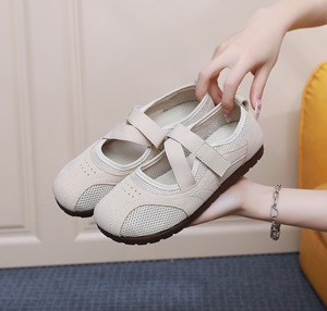 新款老北京布鞋女时尚芭蕾风妈妈鞋舒适简约健步鞋网面透气懒人鞋