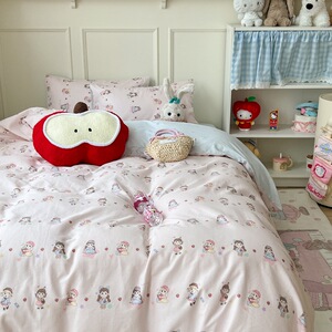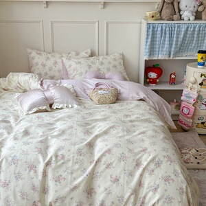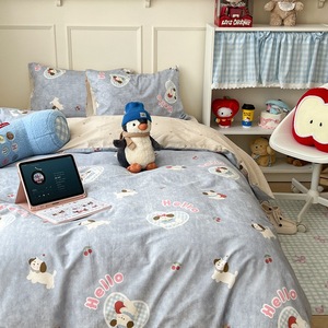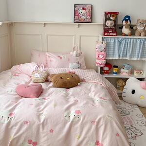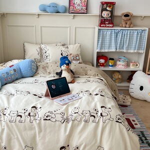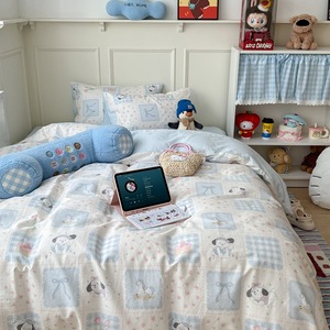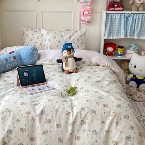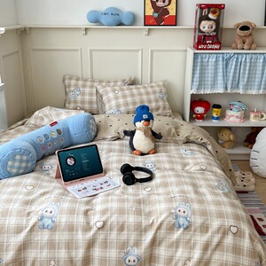 a类全棉印花四件套纯棉床单被套小清新学生宿舍1米2床上三件套夏