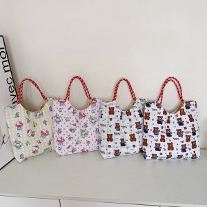 新款可爱卡通大容量水桶包女ins小熊上课百搭手提包宝妈通勤便当