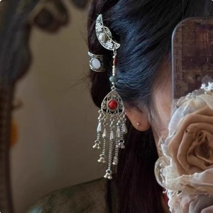 民族风月牙铃销发夹女夹子感精致发饰发卡古风头饰鸭嘴夹卡子
