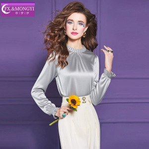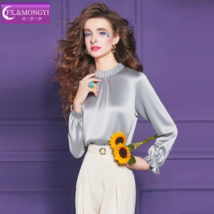 菲梦伊钉珠粉色衬衫女长袖秋装新款时尚简约百搭减龄气质职业上衣