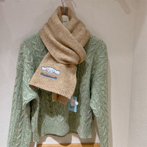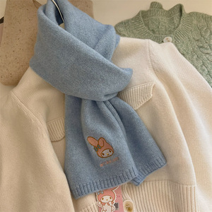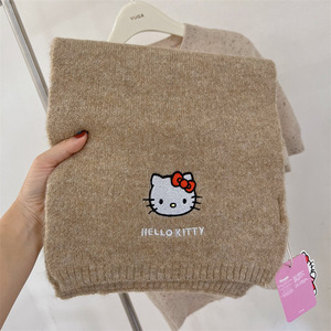 正版hellokitty针织毛线围巾女冬季加厚保暖日系含羊毛围脖