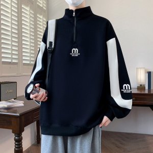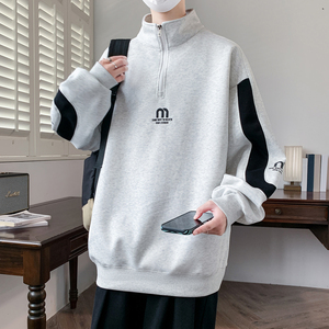 半高领拉链卫衣男春秋款初中高中学生长袖t恤青少年大童男装上衣