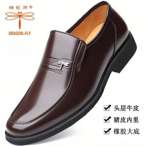 蜻蜓牌真皮男士商务休闲爸爸皮鞋软底鞋中年增高正装男鞋防滑透气