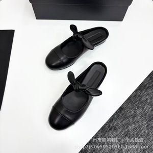 高版本小香风蝴蝶结玛丽珍鞋女春秋新款法式复古拼色休闲芭蕾鞋女