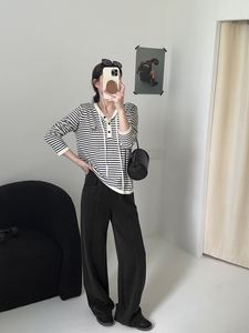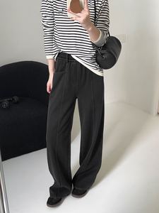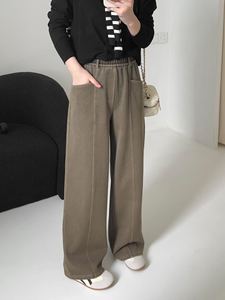 粗纹直筒牛仔裤新款洋气单扣松紧高腰加绒休闲裤女秋冬百搭阔腿裤