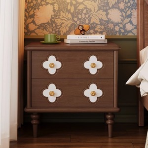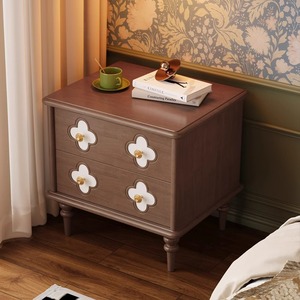 复古床头柜实木小型收纳胡桃色中古风法式储物矮柜家用卧室床边柜