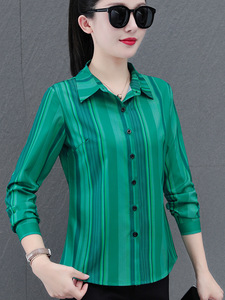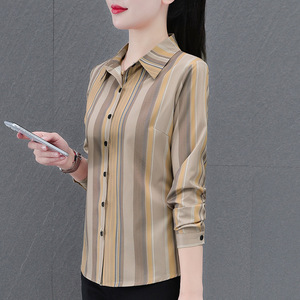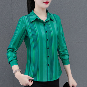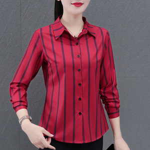 中年女士衬衫女春秋2025新款妈妈衬衣秋季薄款开衫长袖竖条纹上衣