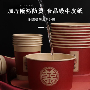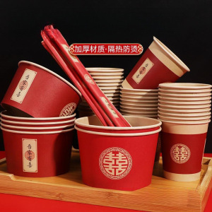 一次性碗结婚纸碗筷套装食品级餐具喜事红色喜碗婚宴婚礼加厚