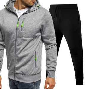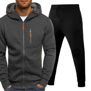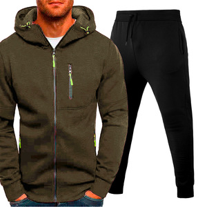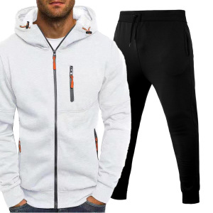 男装春秋运动健身休闲开衫连帽外套连帽卫衣纯色抽绳长裤套装