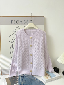 设计感毛衣女小个子宽松显瘦慵懒风圆领麻花针织开衫外套秋冬6087