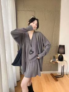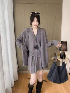 大码女装胖mm2025秋冬季新款高级感针织开衫马甲背心半身裙三件套