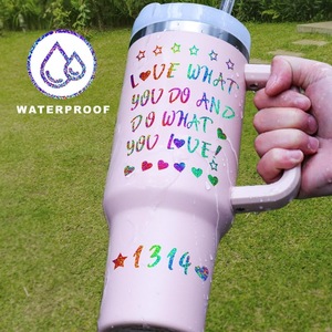 亚马逊外贸1英寸镭射字母贴纸彩色闪光变色乙 烯基用于水杯贴装饰