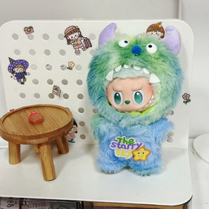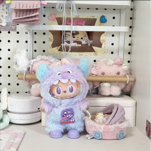 一二三代拉布布娃衣犄角小怪兽labubu可爱挂件毛绒两件套渐变换装