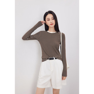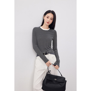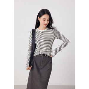 瘦瘦条纹T 莱赛尔绵羊毛 百搭修身圆领条纹T恤25早秋新款G080905