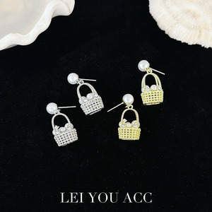 趣味百搭菜篮子珍珠闪钻耳环高级感气质精致百搭小众独特耳钉耳饰
