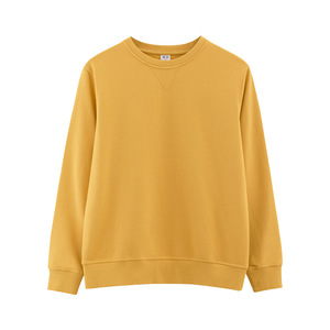 25年芒果黄重磅卫衣毛圈纯色新款叠穿圆领男女上衣情侣美式长袖