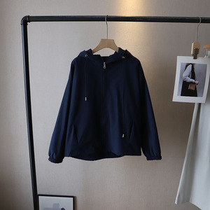 [比正]2025秋季新款韩版连帽冲锋衣外套女宽松百搭小个子夹克4645