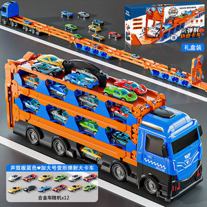 儿童货柜工程车变形大卡车轨道合金收纳弹射汽车6男孩益智玩具3岁