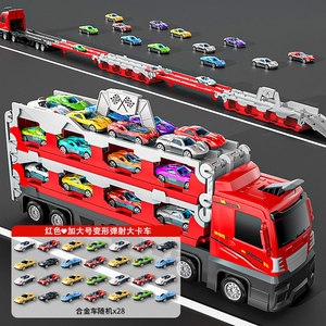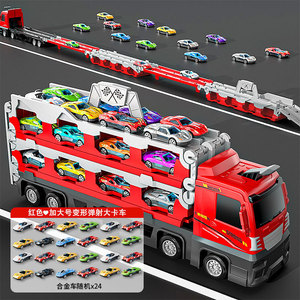 【送礼推荐-竞速版】红 升级加大号-24辆合金车-变形弹射大卡车