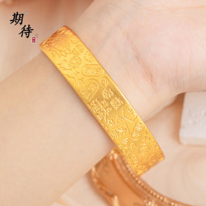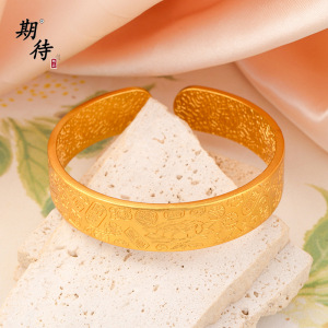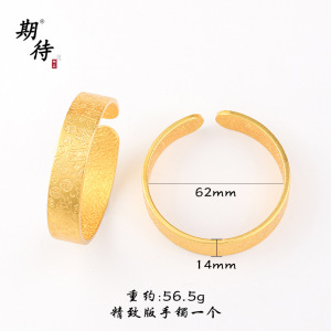 爆款越南沙金莲花吉言开口手镯复古气质高级感宽开口手镯个性时尚