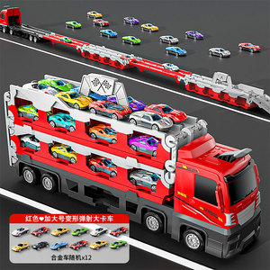 【送礼推荐-竞速版】红 升级加大号-12辆合金车-变形弹射大卡车