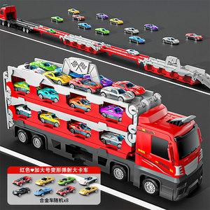 【送礼推荐-竞速版】红 升级加大号-8辆合金车-变形弹射大卡车