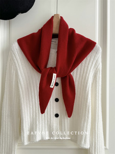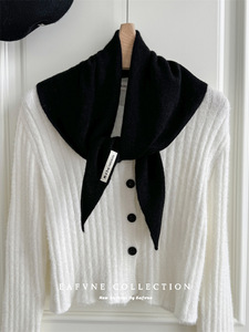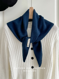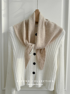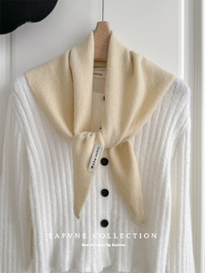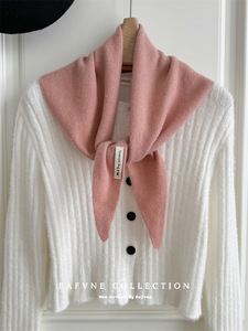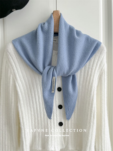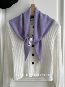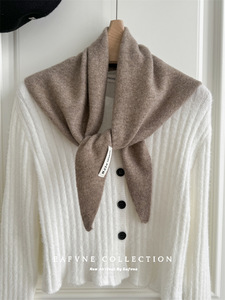 100%澳洲纯绵羊毛针织三角巾女头巾围巾层次感休闲保暖百搭披肩