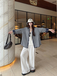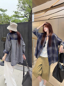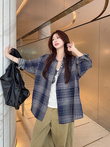 2025年新款北欧晚风设计感正反两穿双面格子衬衫女夏防晒衬衣上衣