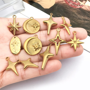 1个17x20x3mm孔1.7mm真空电镀金色不锈钢八芒星四芒星星星-1.5g-T2885